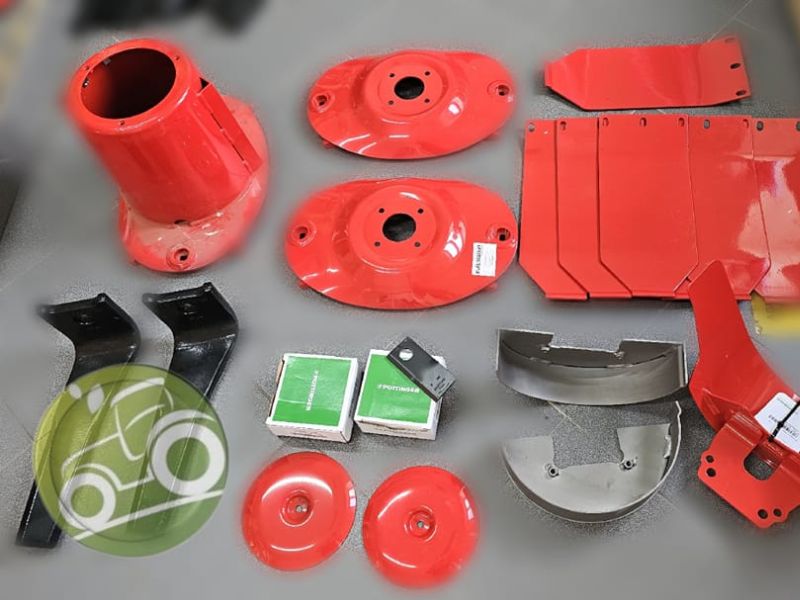 filtros, lubrificantes, baterias, iluminação, bancos, embreagens, peças para motor, componentes elétricos, transmissões de cardan, engates aos 3 pontos, fio e discos para roçadoras, correntes e lanças para motosserras e acessórios diversos.
